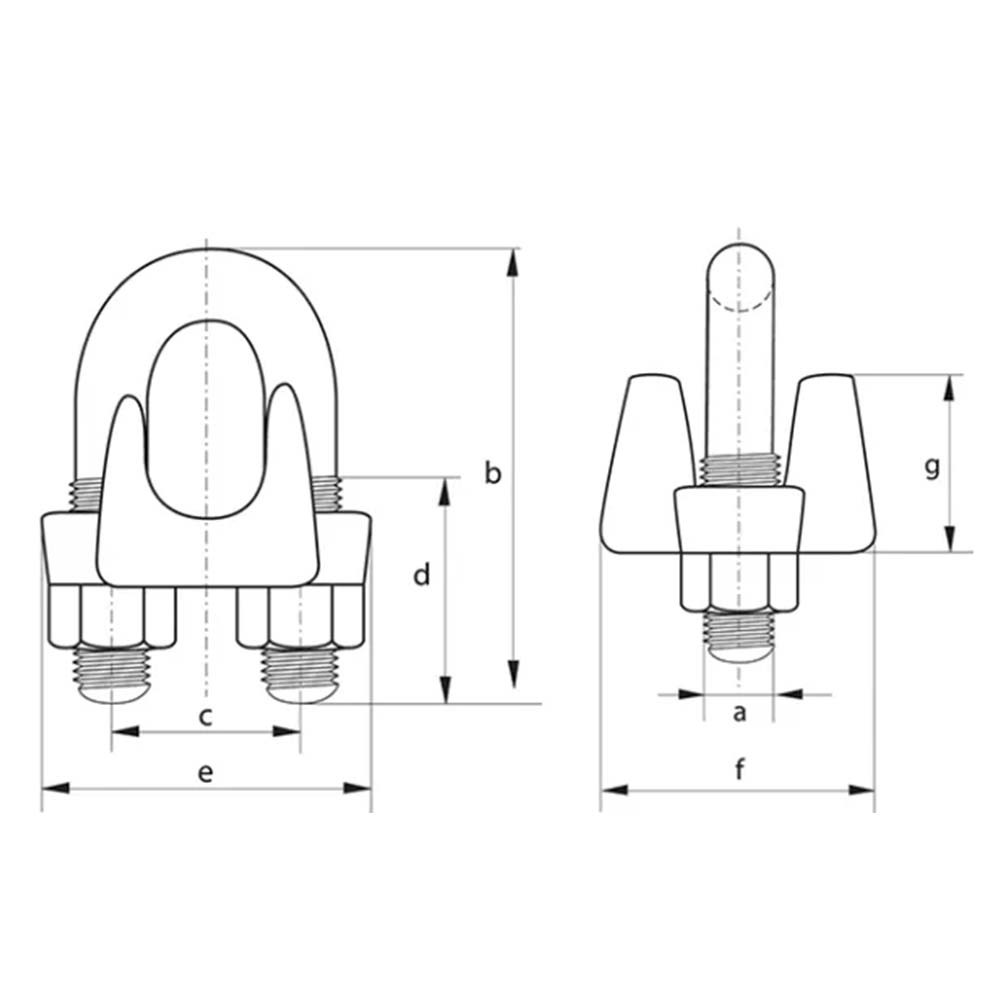 | Reférence | Ø cable mm | a | b | c | d | e | f | g | Poids (Kg) |